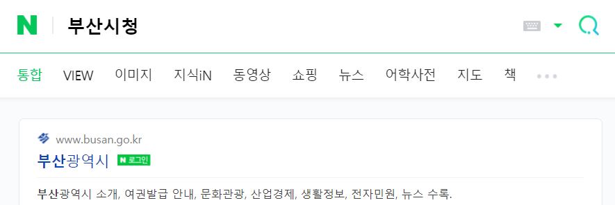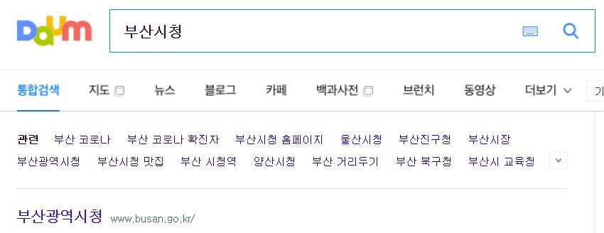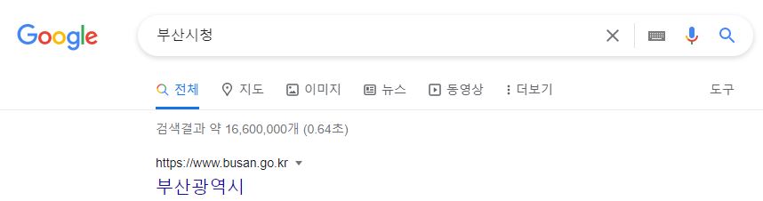 부산시청 홈페이지에 접속하려면 아래와같이 포털 검색창에 부산시청을 검색하면 됩니다. 구글 네이버 다음 어디든 결과는 같습니다.