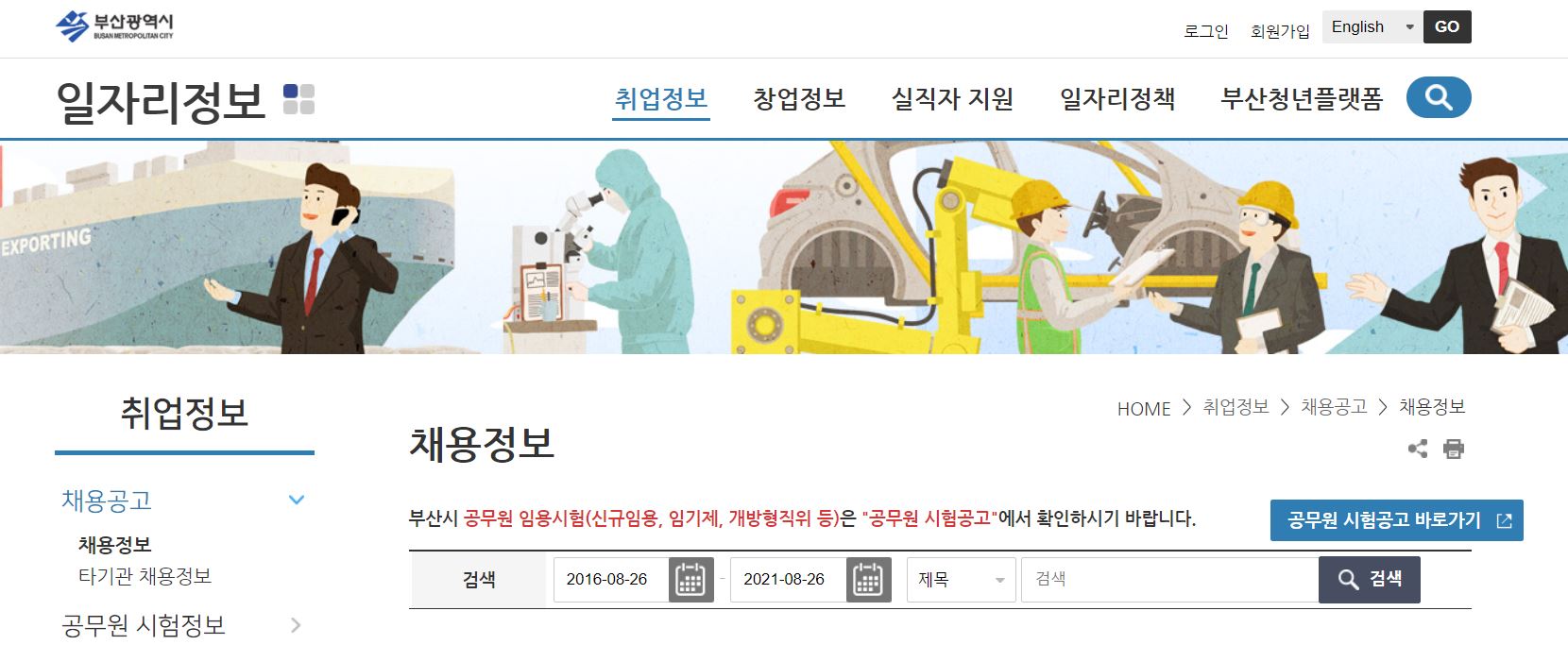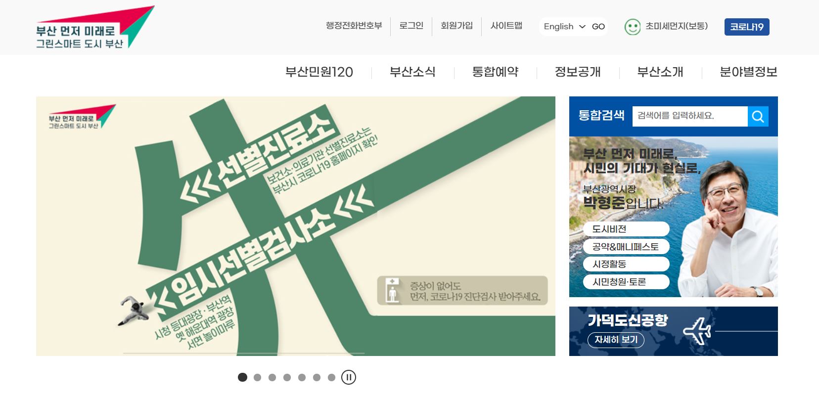 부산시청 홈페이지에 접속하면 아래와 같은 정보가 나옵니다.