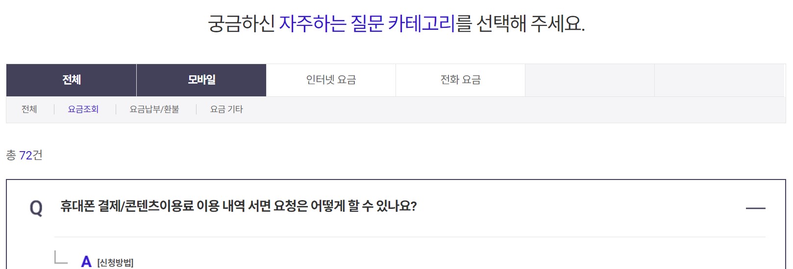 | 4 | 휴대폰결제/콘텐츠 이용료 확인 1 휴대폰결제 한도조회 2 휴대폰결제 상세내역 3 콘텐츠이용료 한도조회 4 콘텐츠이용료 확인 0 상담사연결 |