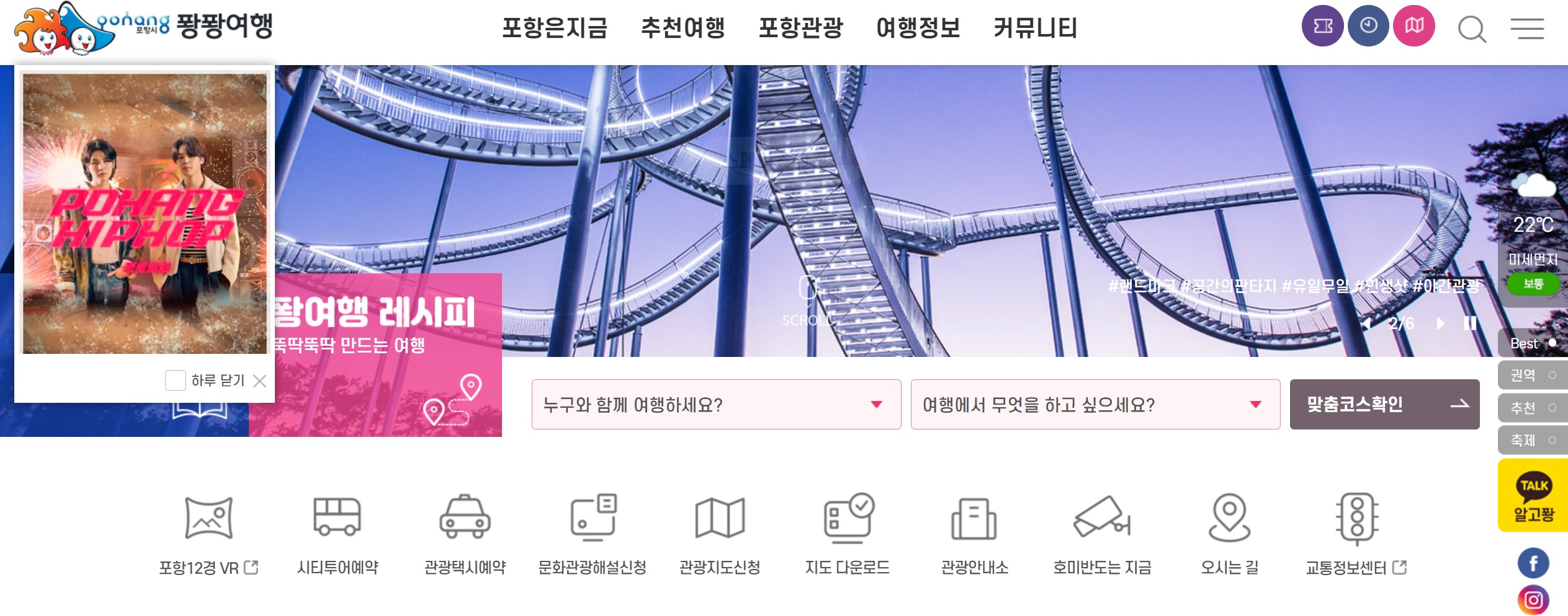 포항시청 홈페이지에는 포항시 문화관광 홈페이지가 있습니다.