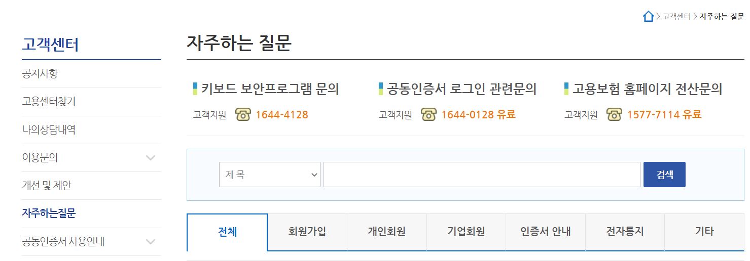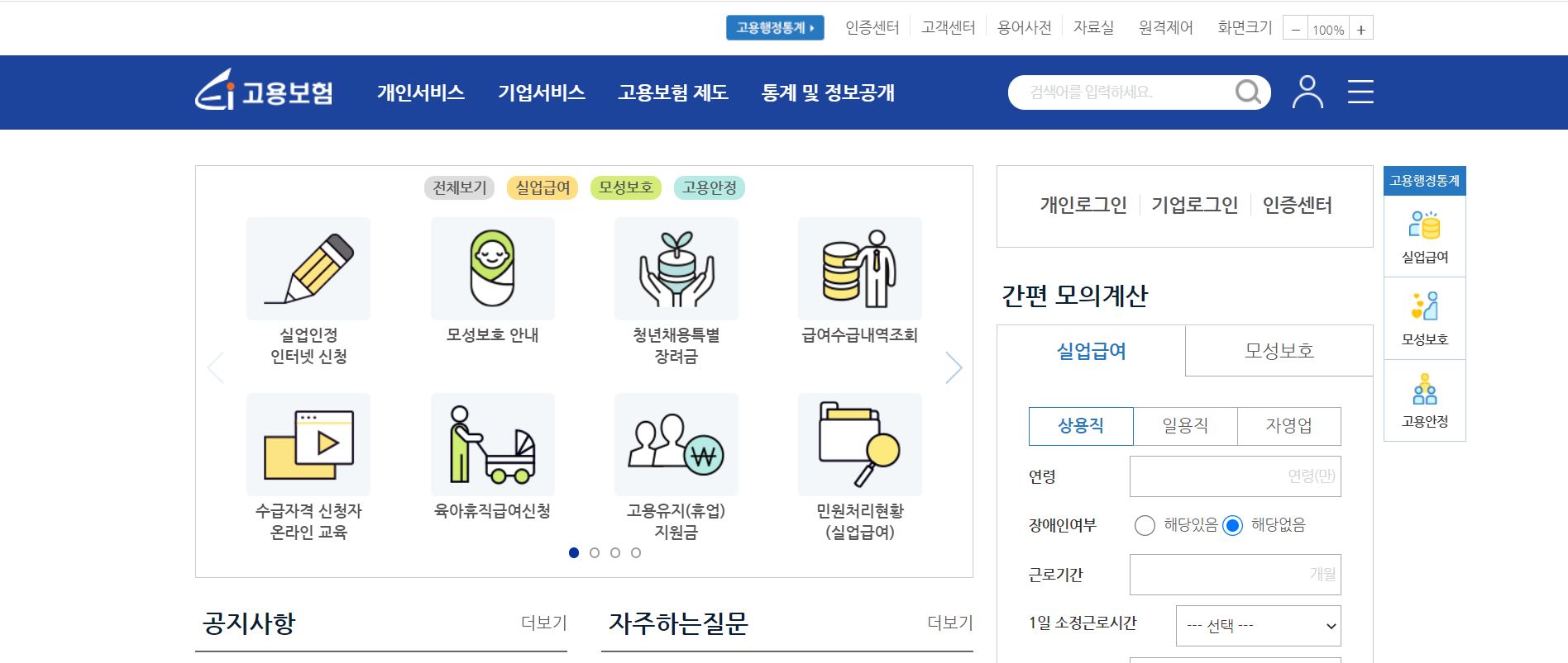 고용보험 홈페이지