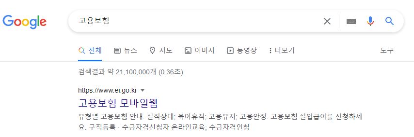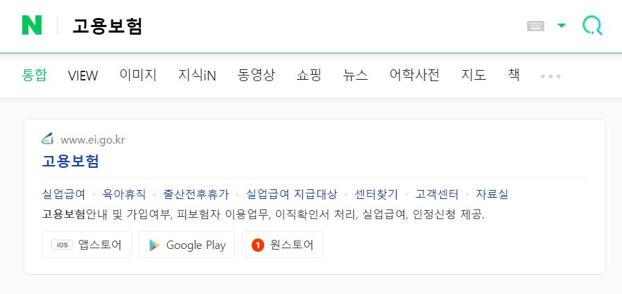 평소 자주 이용하는 포털사이트 검색창에 고용보험이라고 검색하면 상단에 주소가 나옵니다. 바로 링크를 통해 접속하면됩니다.