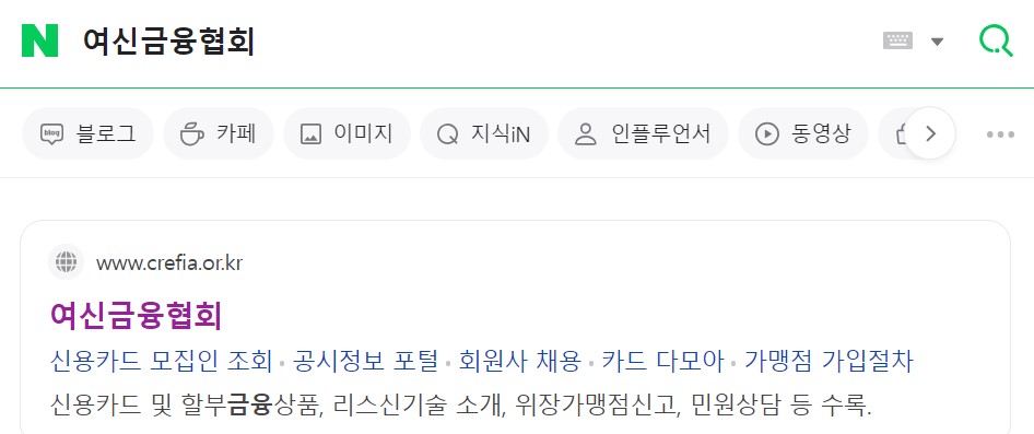 네이버, 다음, 구글 등 홈페이지에서 여신금융협회를 입력하고 검색하면 홈페이지 주소가 나와요.