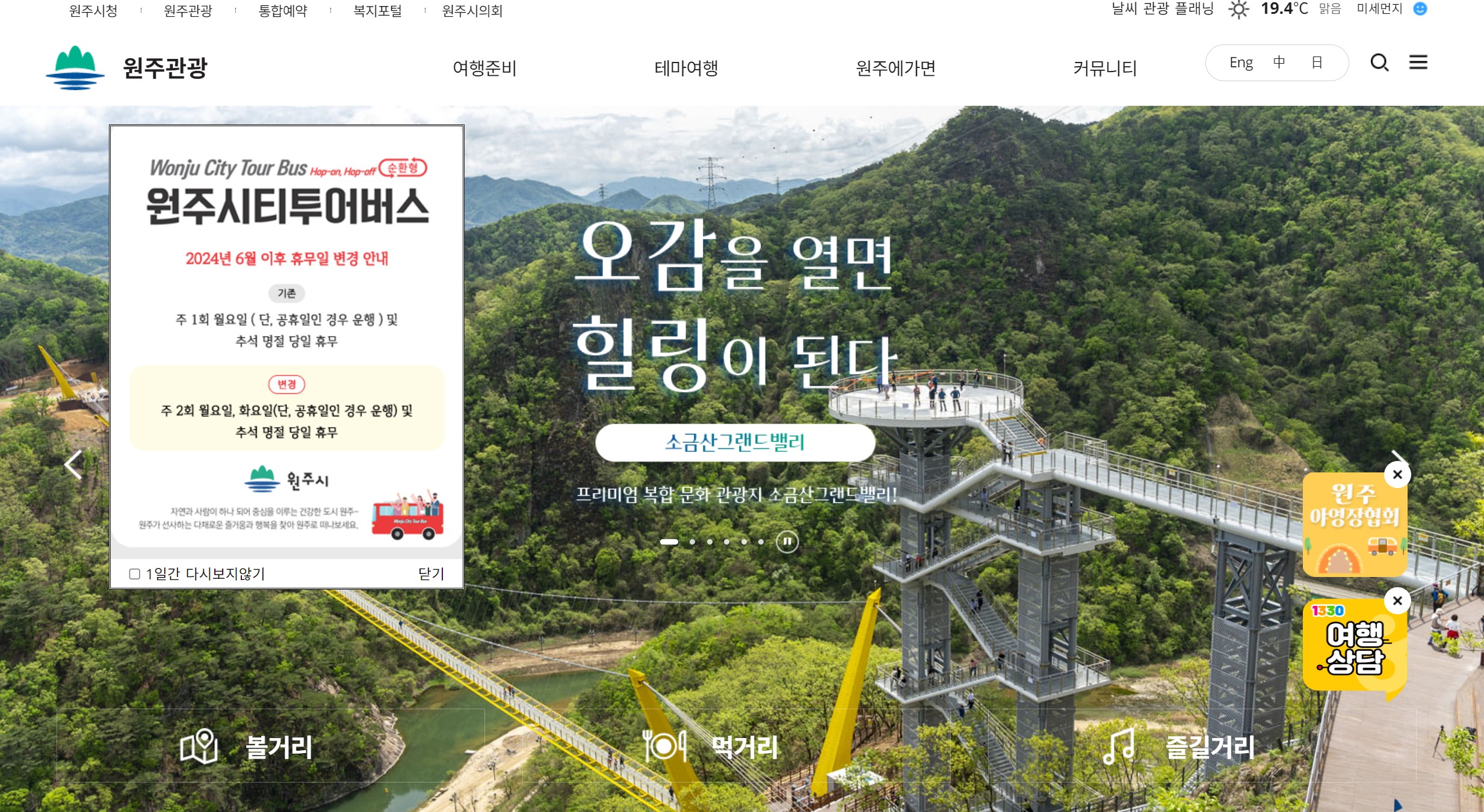 원주시 관광 홈페이지 바로가기