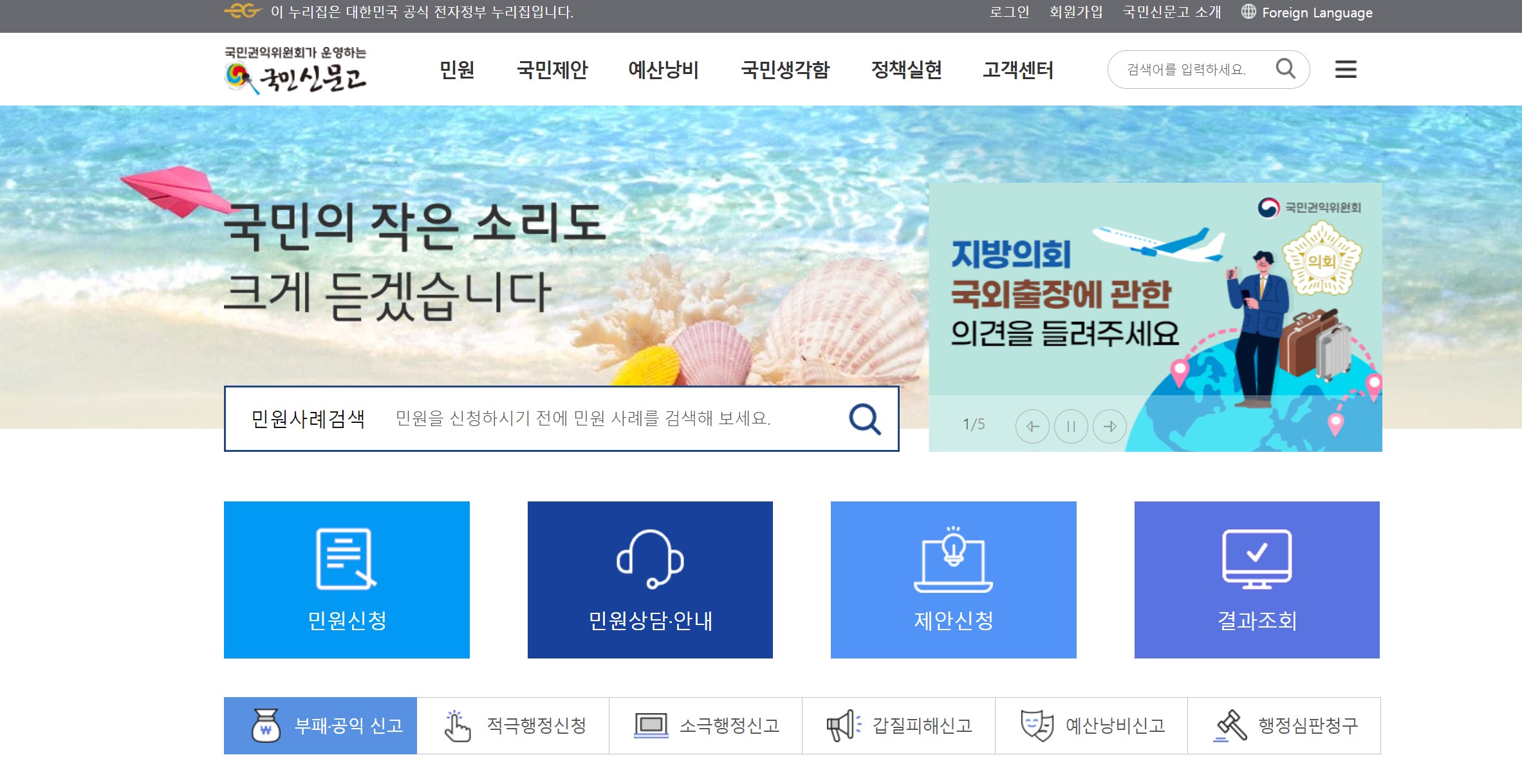 국민신문고는 국민들이 생활하면서 겪는 불편사항, 부당한 대우 등을 신고하고, 정책 제안이나 문의를 할 수 있는 온라인 창구로 정부의 각종 행정기관이랑 연결되어 있어 빠르고 효율적인 민원 처리를 할 수 있습니다.