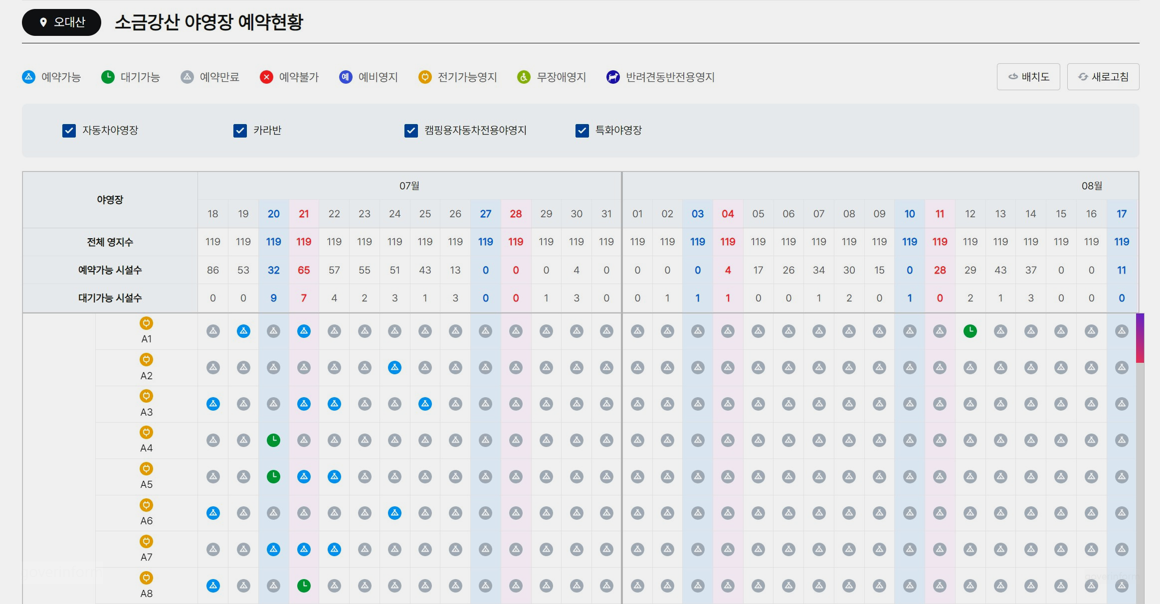 오대산 국립공원 야영장 예약하기 (국립공원공단 예약시스템)