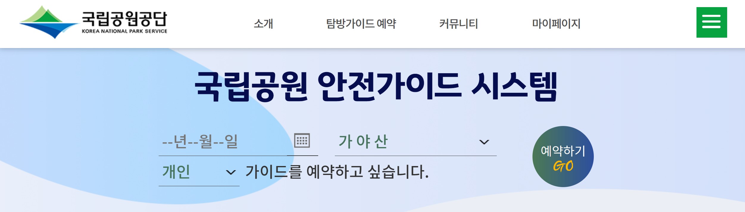 안전가이드가 필요한 분들은 아래 국립공원 안전가이드 시스템에서 날짜를 입력하고 예약을 진행하세요.