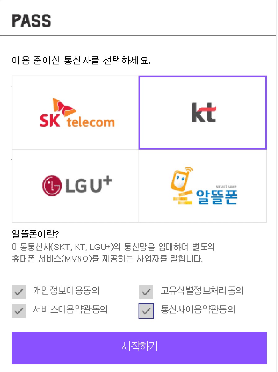 4. 휴대폰인증이나 아이핀 인증 중 본인인증 방법을 선택하고 절차를 진행하고 완료합니다.