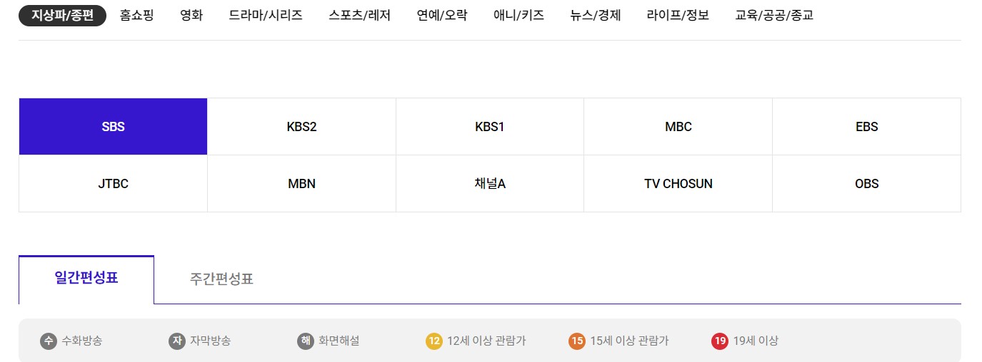 3. sk btv 실시간 편성표