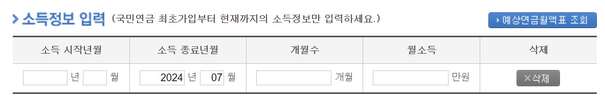 소득 그리고 가입기간을 원하는 대로 입력해서 예상연금액을 확인합니다.