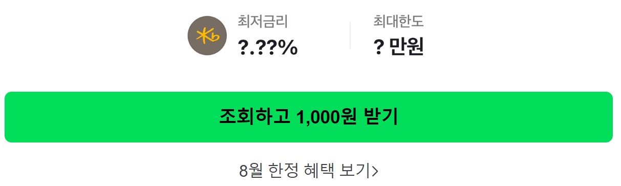 2) 네이버페이 대출 홈페이지에서 조회하고 1,000원받기 버튼을 클릭합니다.