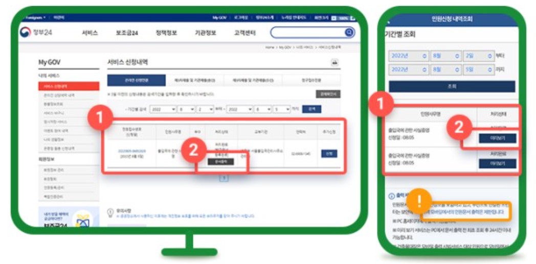 정부 24 앱을 이용하면 편리하게 출입국 사실 증명 발급 서비스 및 기타 정부의 서비스, 민원, 보조금 24 등을 이용할 수 있습니다.
