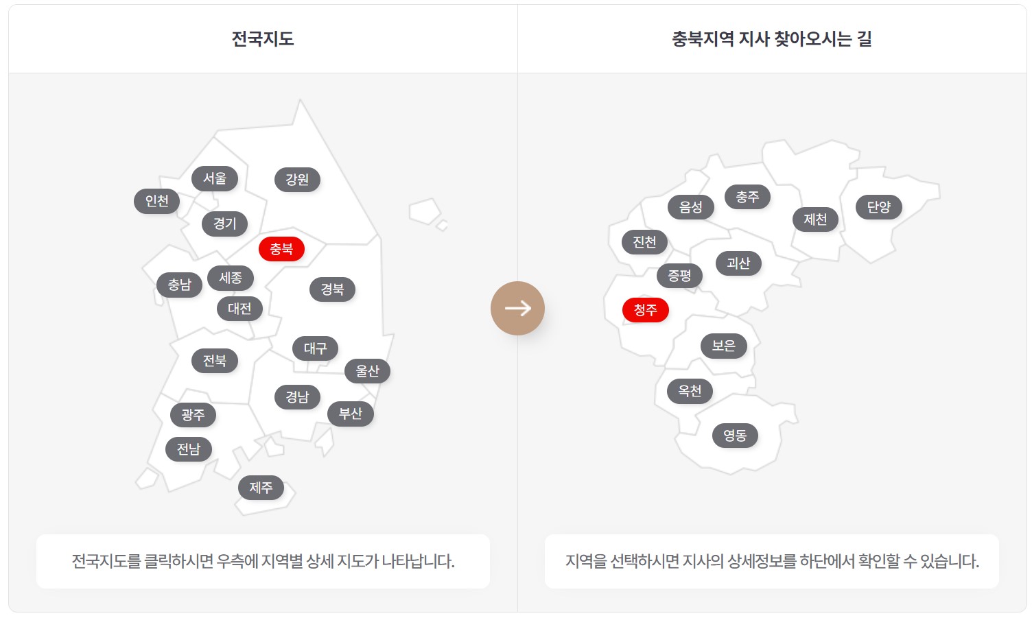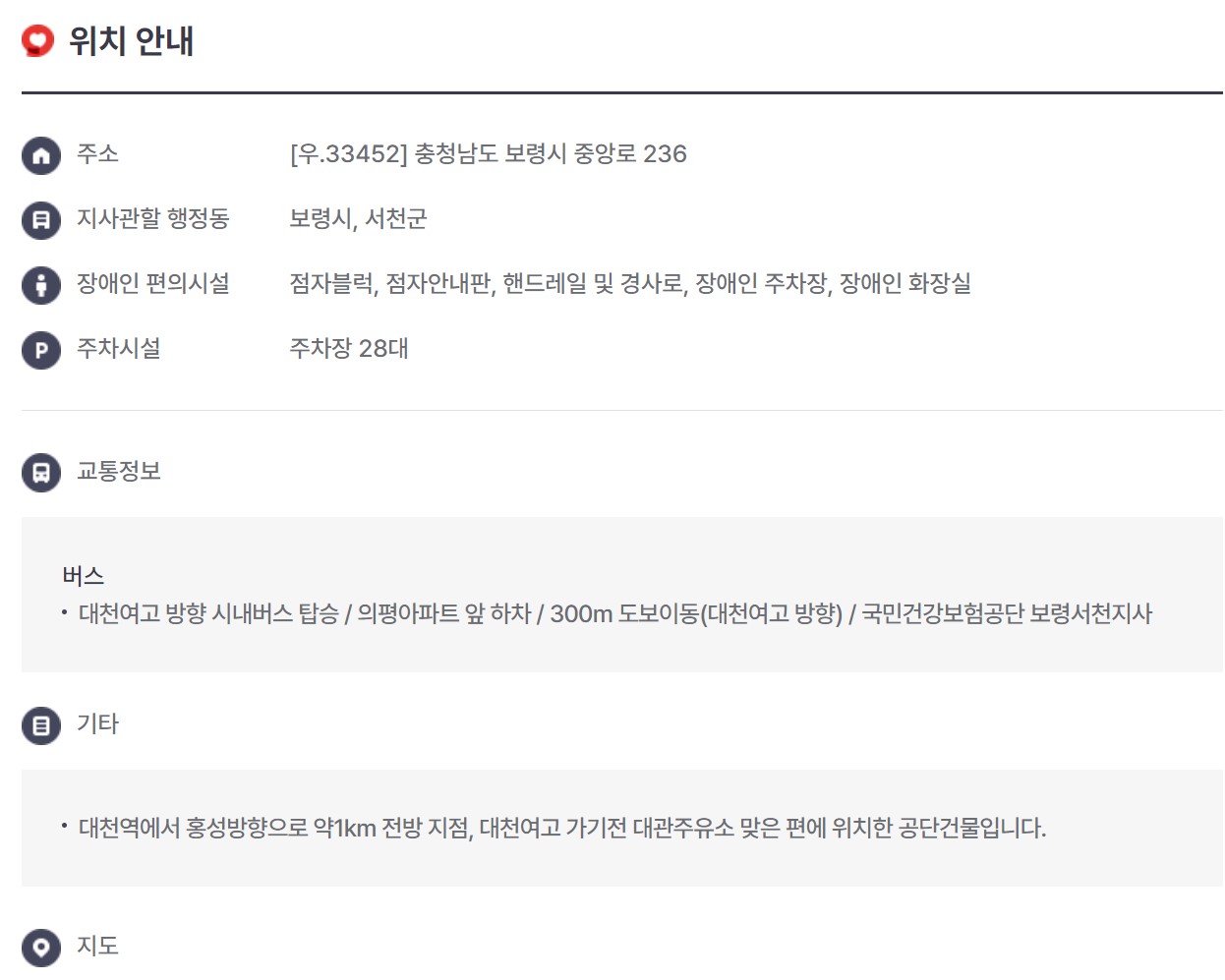 4. 스크롤 내려서 지사명, 지역본부, 주소, 지사정보(위치안내 및 연락처) 확인