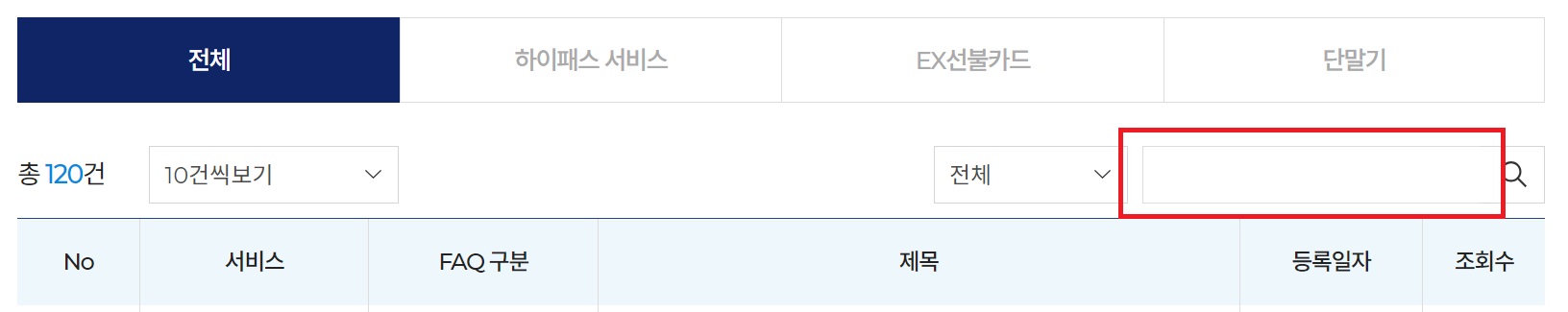 faq는 여기에서 검색어(문의사항)를 입력하고 돋보기 버튼을 클릭하면 문의사항과 답변을 바로 확인할 수 있습니다.