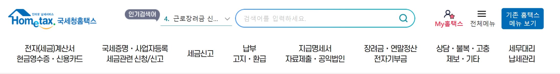 홈택스 로그인 → 장려금·연말정산 ·전자기부금 →근로·자녀장려금 정기신청 → 신청하기