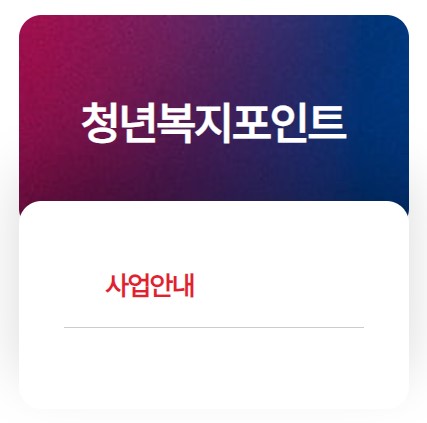 청년 복지몰이란 청년 복지포인트 사업 참여자에게 복지포인트를 제공하고, 복지포인트를 관리하여 다양한 복지서비스를 이용할 수 있는 복지시스템입니다.