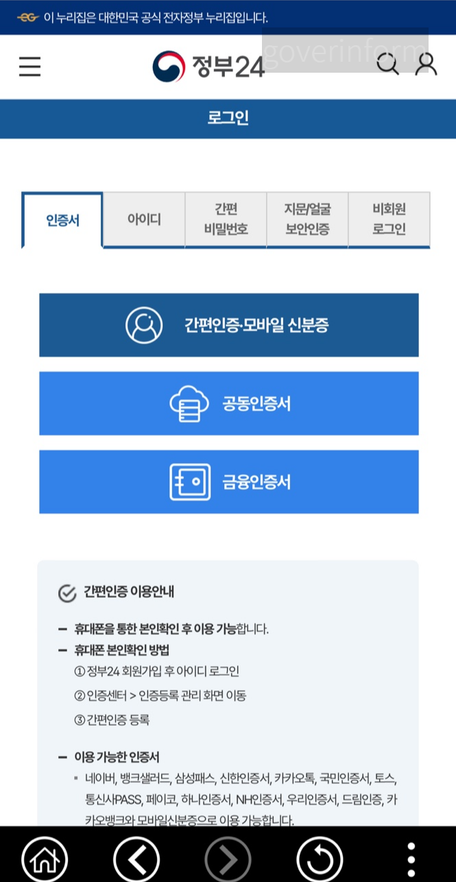 1. 모바일에서 정부 24 앱을 다운로드합니다.