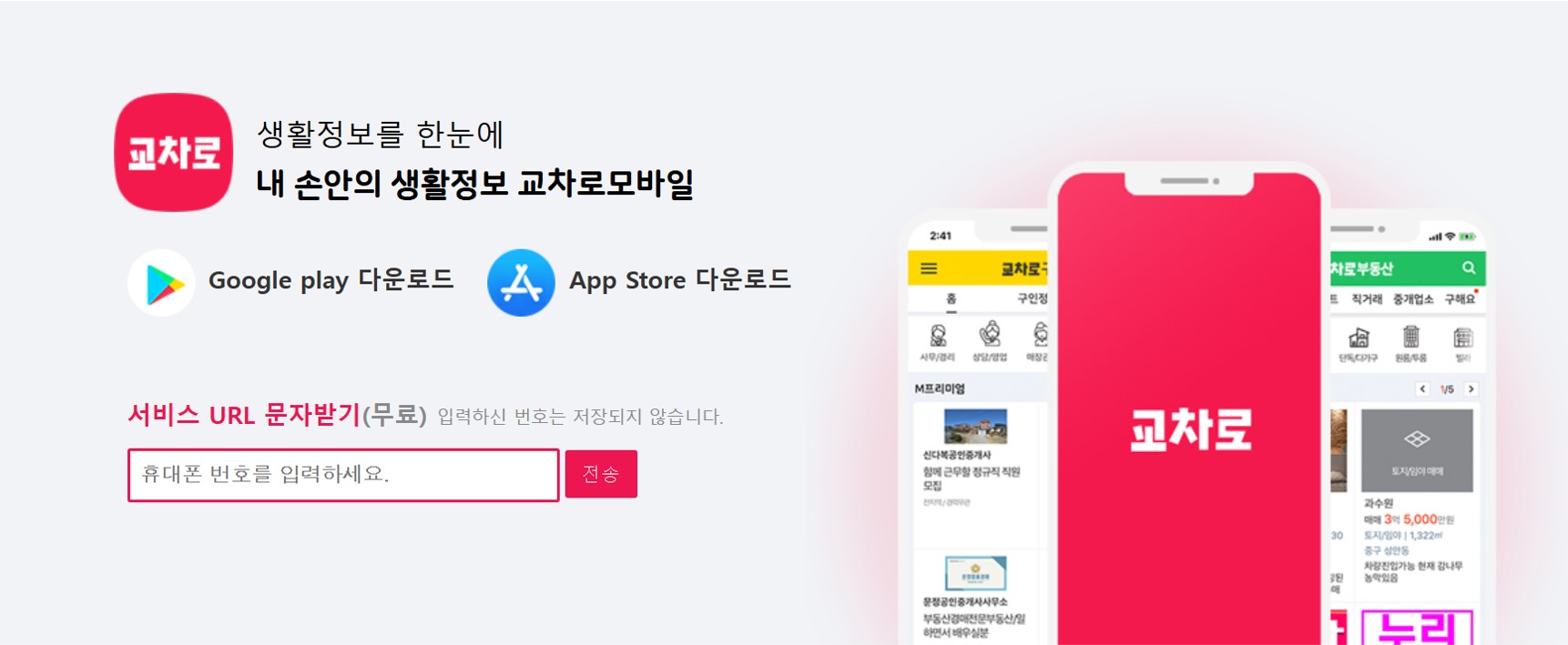 교차로 앱을 다운하여 편리하게 원하는 시간에 교차로 서비스를 이용할 수 있습니다.