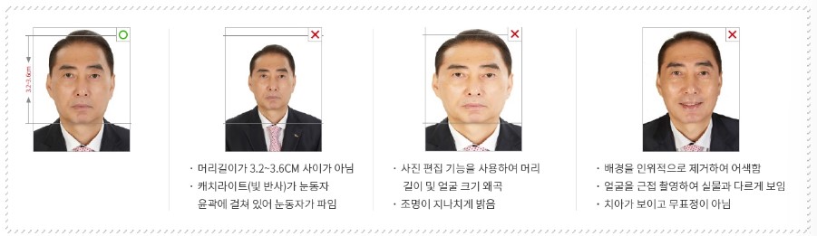 머리 길이: 사진 인화 시 머리 길이가 3.2~3.6cm 사이가 되어야 함
