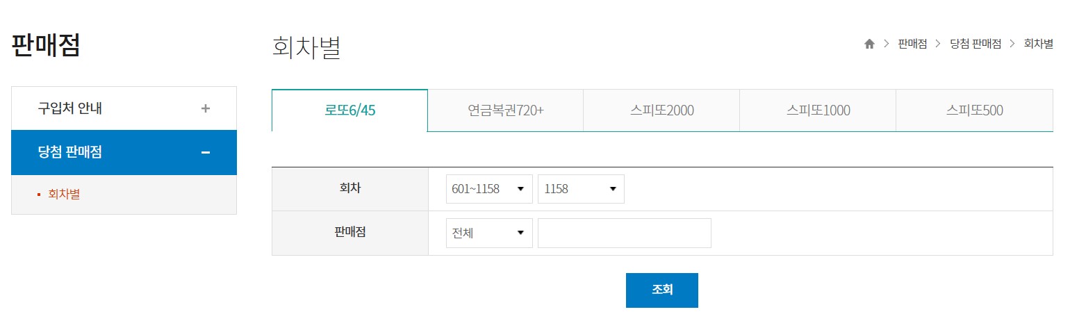 동행복권 판매점을 조회하려면 어떻게 해야 할까요?