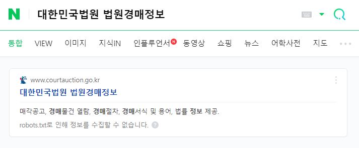 포털검색창에 대한민국법원 법원경매정보를 치면 바로 주소가 나옵니다.