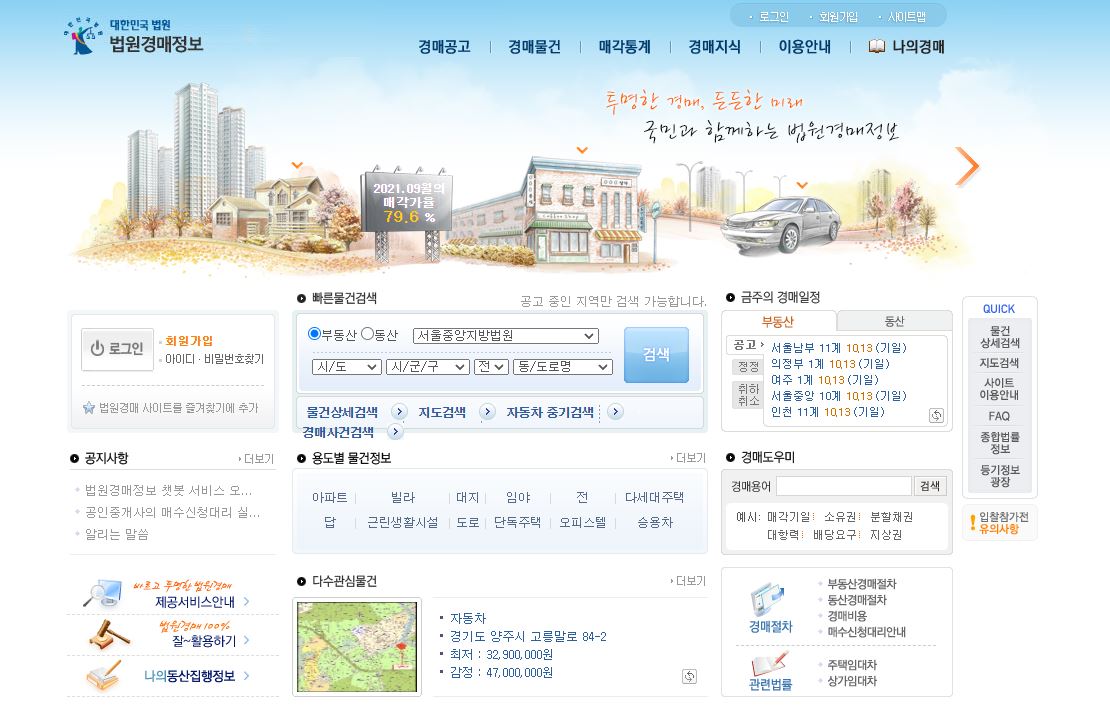 대한민국법원 법원경매정보 홈페이지 첫화면입니다.