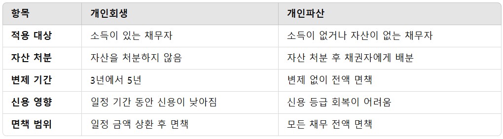 특징: 채무가 전액 면책되지만, 자산은 처분되며 사회적 신용에 영향을 미칩니다.