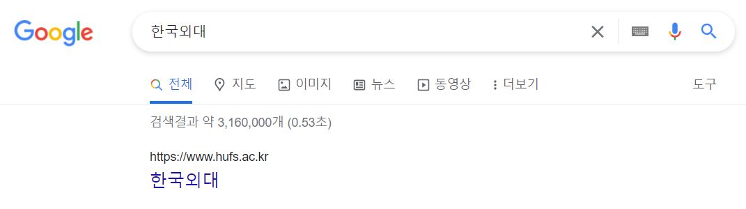 한국외대 입학처 홈페이지에 바로 접속하는 방법은 포털 검색창에 한국외대를 입력하는 것입니다.