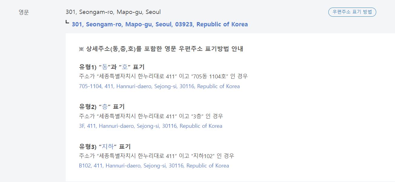 도로명 주소란 도로명 + 건물번호로 이루어져 있는 것으로 우리나라는 도로구간마다 이름이 부여되어있으며 명사 + 도로별 구분 기준 예를 들면 대로/로/길로 구성되어있습니다.