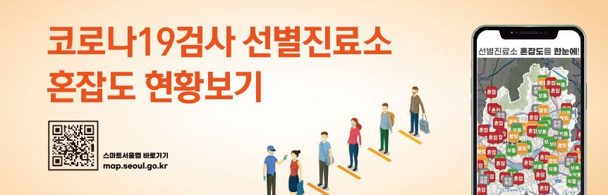 코로나19 선별 검사를 받는 시민의 편의를 위해 혼잡도를 보통(30분 이내), 붐빔(60분 내외), 혼잡(90분 이상)으로 1시간 단위로 안내합니다. 현장 사정상 안내와 달라질 수 있으니 이용에 참고하시