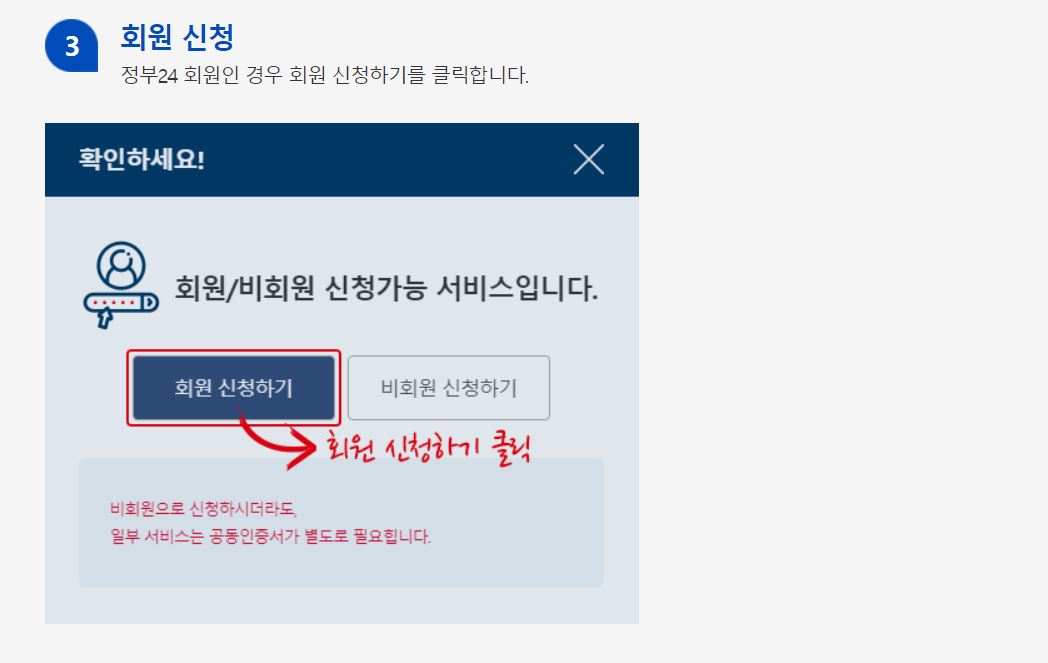 회원인 경우 회원신청을 누르면 됩니다. 비회원도 신청 가능해요-
