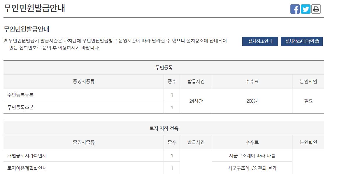 간편한 세상입니다요 ㅋ 여러분도 쉽게 서류 발급을 하세요-- 그리고 무인민원발급기는 운영시간이 24시간인 곳이 대부분이라 시간에 구애받지 않을 수 있는 장점도 있어요 ㅋㅋㅋ