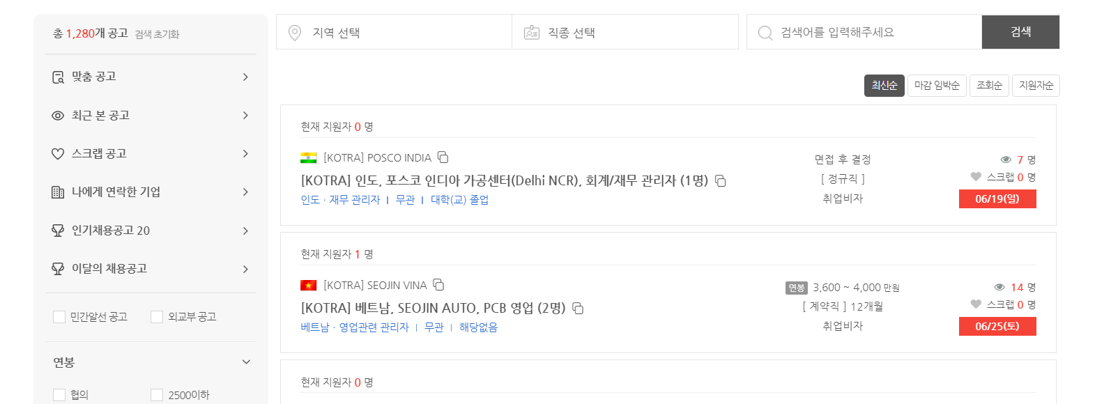 호텔이나 공항 영업 관련 관리자 광고회사 자동차 부품기업 등 다양한 채용정보가 있으니 필요하신 분은 홈페이지를 확인하시면 됩니다.