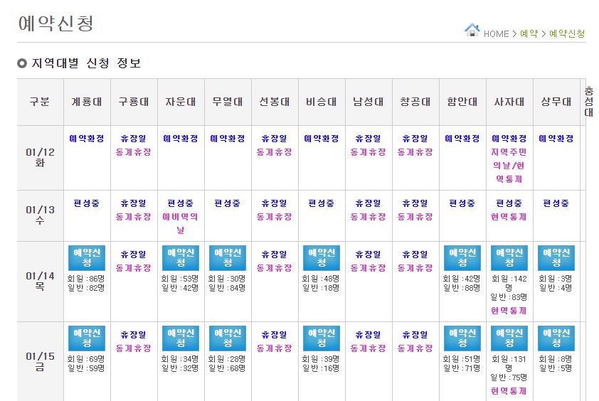 3. 예약은 이용일 기준 15~9일 전에 예약을 해야 이용이 가능합니다.