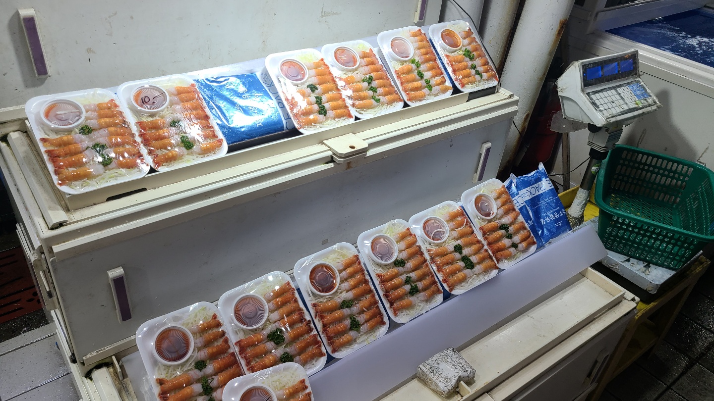 갈치,고등어,우럭,광어, 참돔, 딱총새우 회,, 일행이 회를 넘~~~~~~~~~~~~~~~~좋아해서 두 팩 겟 !