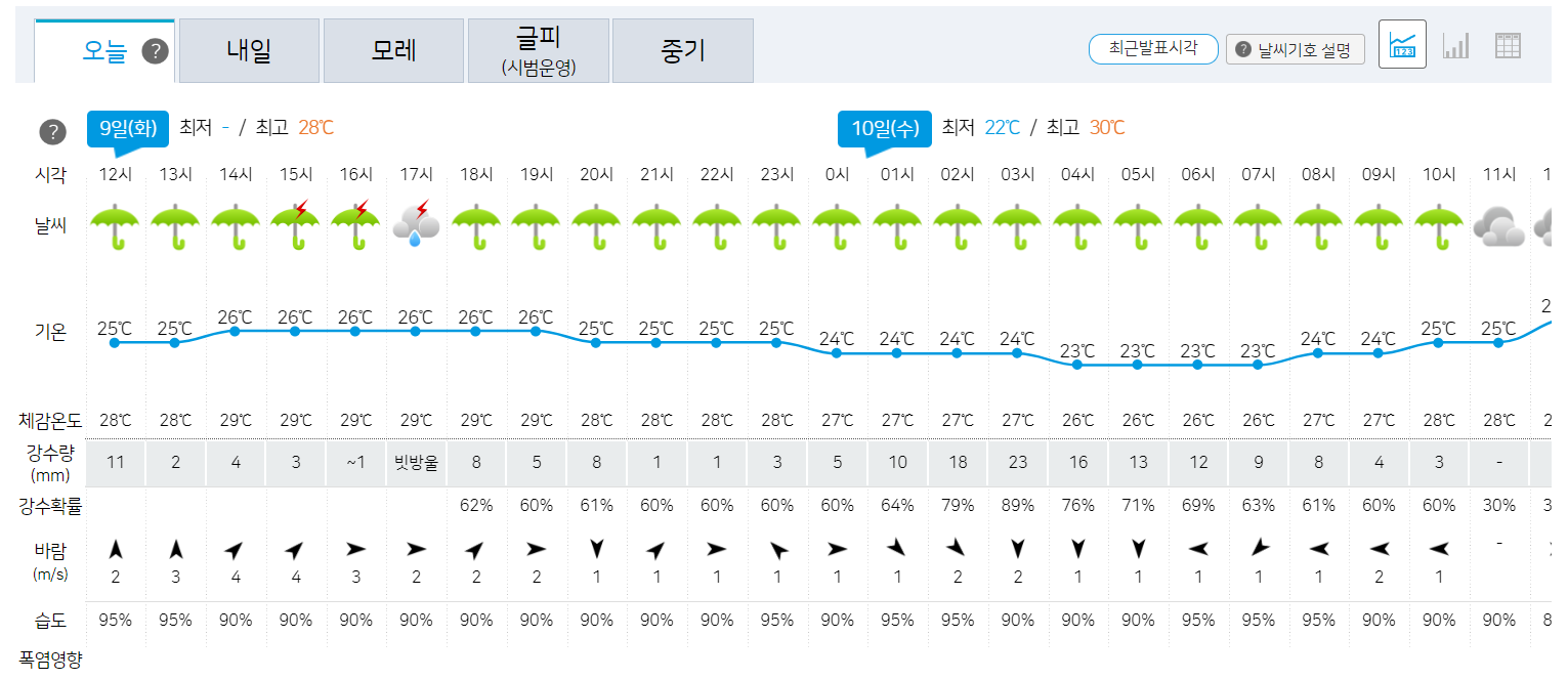 오늘,내일 뿐만 아니래 3일뒤 그리고 중기(2주)치 날씨예보를 볼 수 있습니다.
