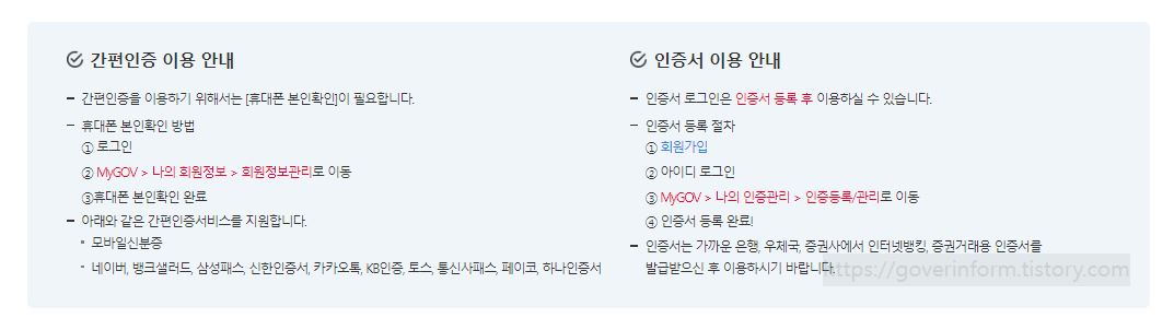 다음처럼 정부24 홈페이지에서 간편인증이나 공동 금융인증서를 발급 받습니다.