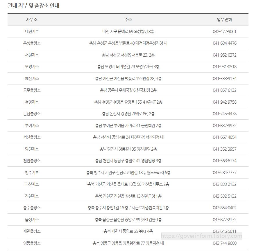 출장소 및 국내 상담기관 리스트가 아래에 있다. 바로 아래에는 출장소 주소와 전화번호가 있다. 상담이 필요한 사람들에게 아주 유용한 정보가 될것이다.