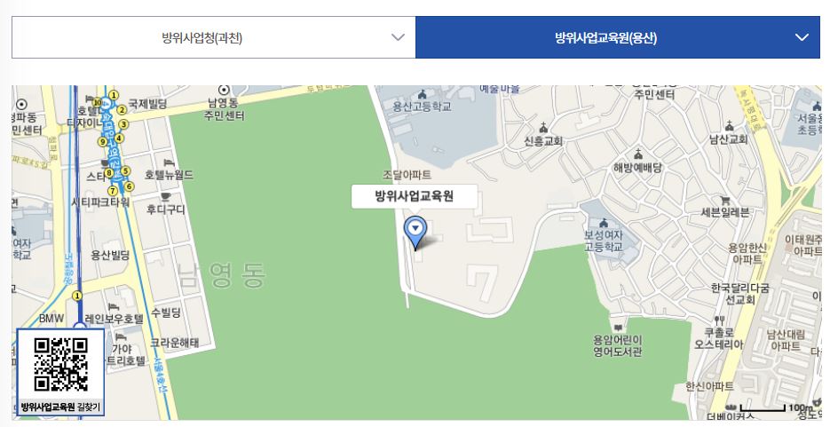 방위사업청은 과천과 용산 두곳에 본청과 교육원이 있습니다.