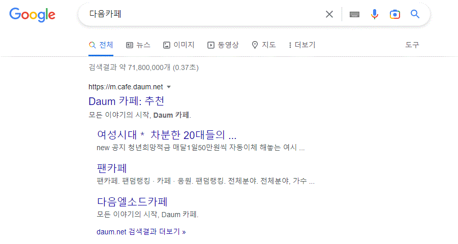 다음 카페를 구글에 검색하면 모바일 홈페이지가 나와서 다음에서 다음 카페를 들어가는 순서대로 해보겠습니다.