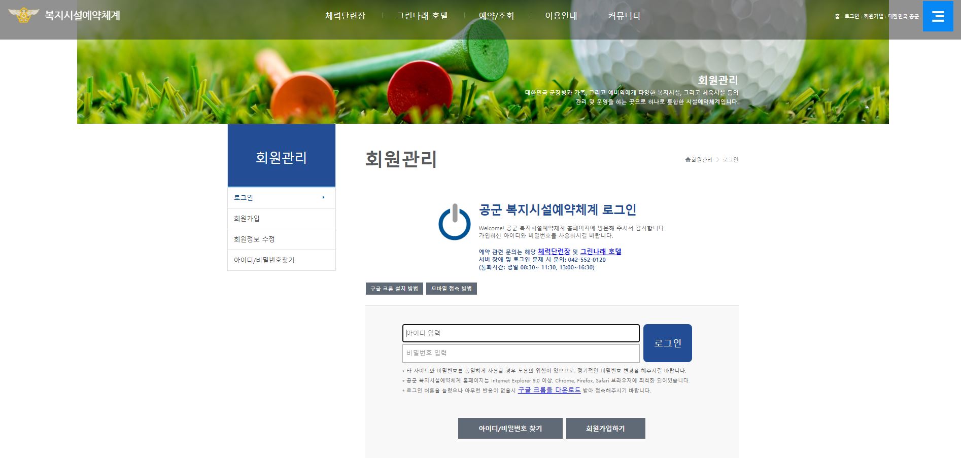 예약을 한 후에는 공사 체력단련장 홈페이지에서 예약확인을 할수 있습니다. 내가 예약한걸 확인하는거이기 때문에 공군 복지시설예약체계 로그인을 해야합니다~ 로그인은 어렵지 않습니다. 아이디, 패쓰워드 입력을 제대로만 하면 바로 이용할수 있습니다.