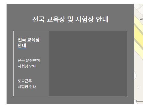 에 대한 내용이 있고 전국 교육장이나 시험장을 알려주고 있습니다. 토요일에도 운영하는 시험장을 안내해줍니다.