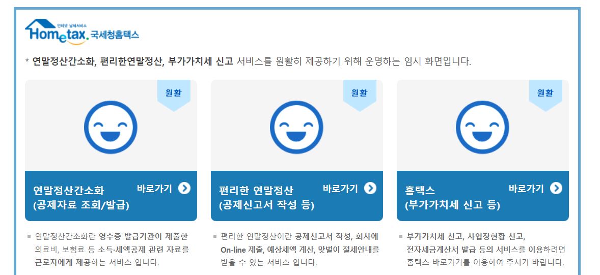 연말정산은 연말정산간소화 서비스 바로가기에서 이용하면 됩니다. 바로가기