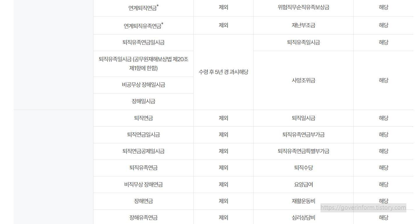 - 각종 법령의 규정에 의해 정기적으로 지급되는 각종 수당·연금·급여·기타 금품
