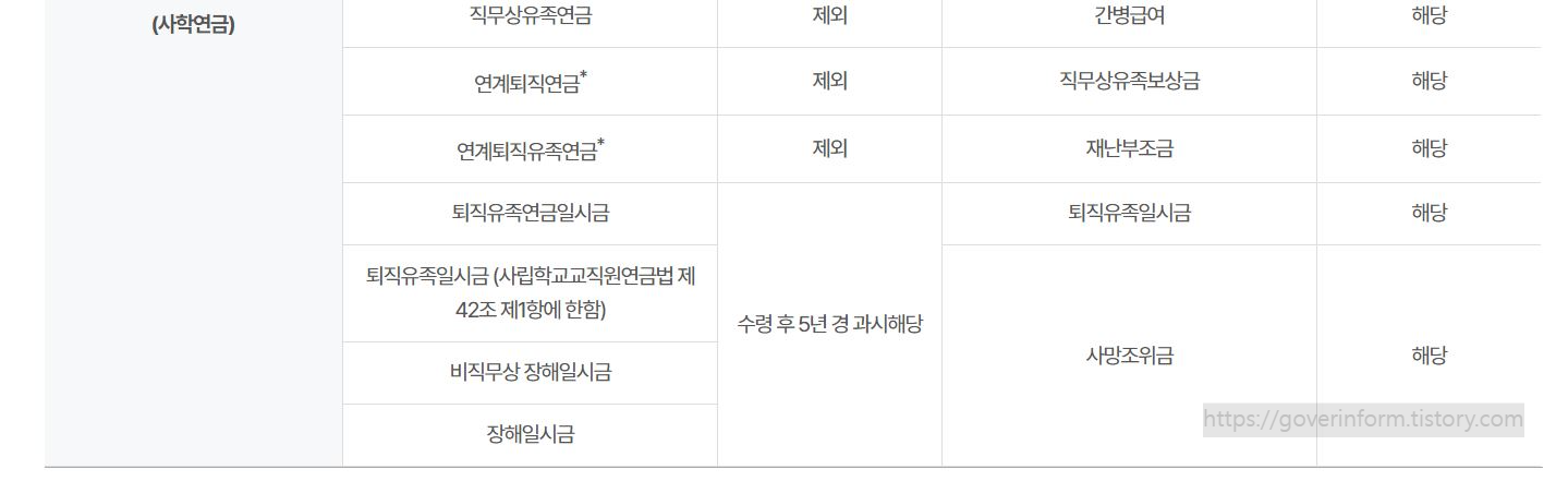 (국민연금, 공무원연금, 군인연금, 사립학교교직원연금, 산재급여)