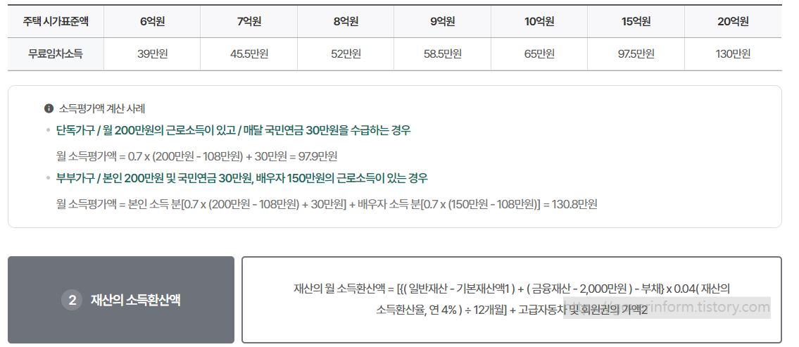 - 본인 또는 배우자의 주민등록상 주소지 주택이 자녀명의이고, 시가표준액 6억원 이상인 경우, 연 0.78%의 소득이 적용됩니다.