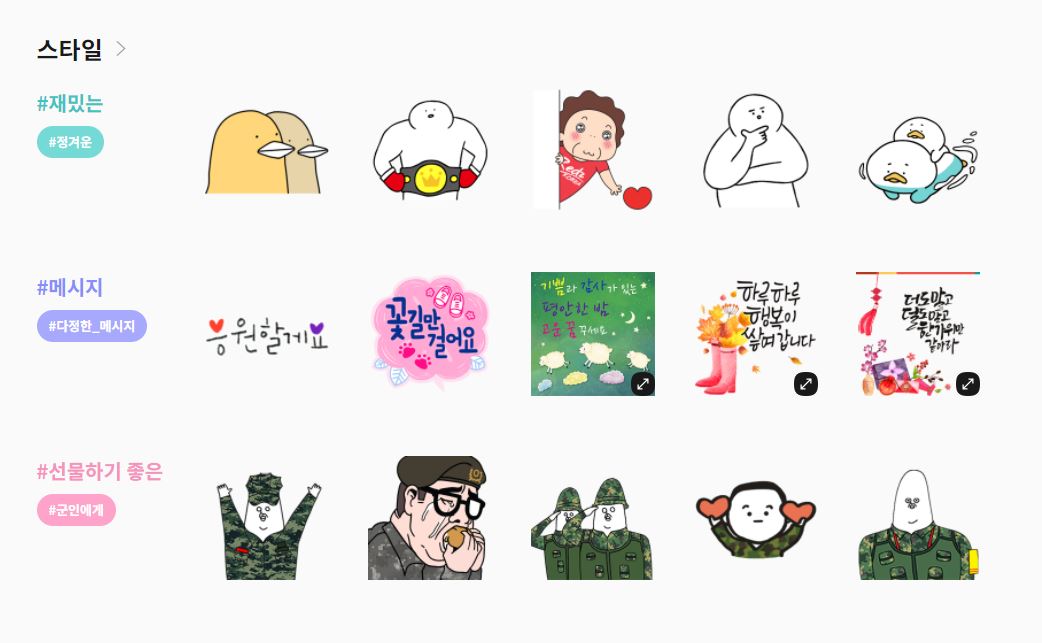 카카오톡 이모티콘샵이 좋은 이유로 내 맘에 드는 이모티콘을 스타일별로 볼 수 있다는 점이 꼽히기도 합니다.