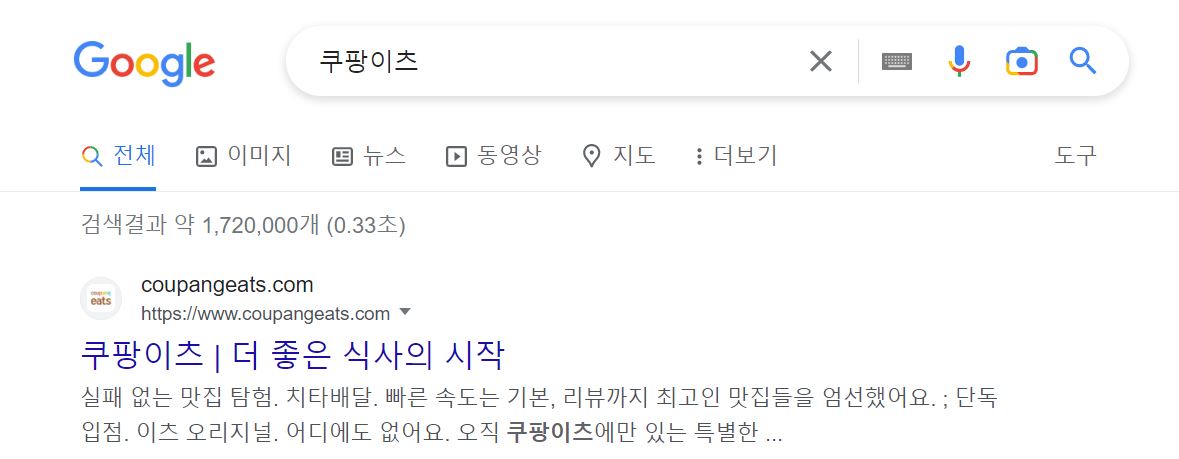 구글 검색창에 쿠팡이츠를 입력하고 검색하면 쿠팡이츠 홈페이지 주소가 나오고 여기에 접근하면 쿠팡이츠 홈페이지를 볼수 있다.