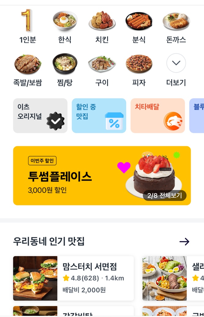 쿠팡이츠 홈페이지 첫화면은 다음과 같이 구성되어있다.