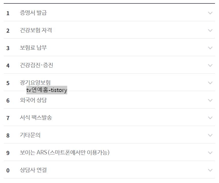 > 국민건강보험공단 고객센터 업무별 단축번호
